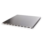 Takskyddsplåt används för att skydda brännbart material från strålningsvärmen av bastuugnar eller andra elstäder. Då plåten är invikt på sidorna så bildar den en luftspalt på 30 mm från vägg eller tak, vilket isolerar värme effektivt. Materialet är rostfritt stål.