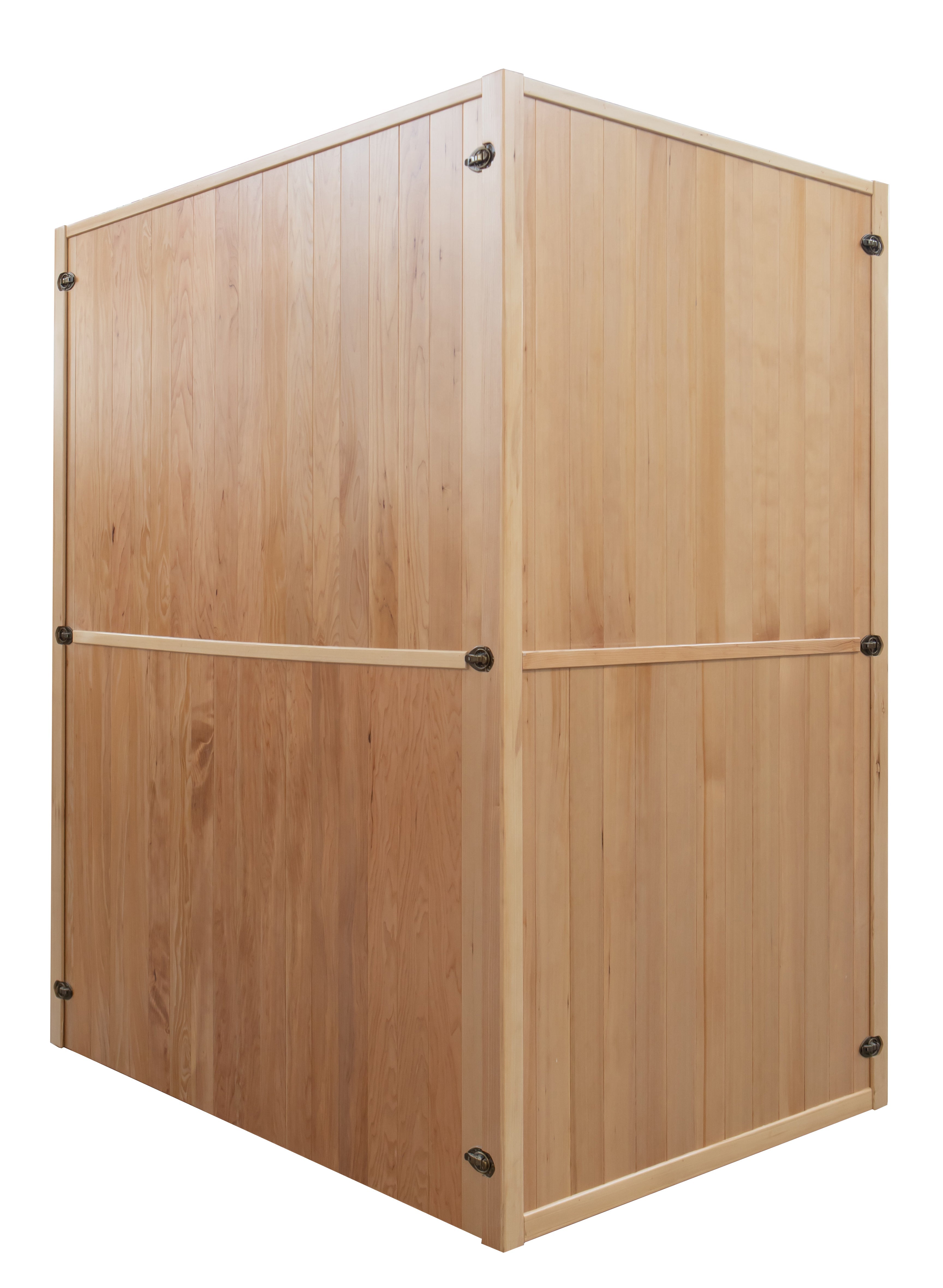 Kabinen är tillverkad i 100% kanadensisk gran från hållbart skogsbruk. Träet är naturligt aromatiskt och har god motståndskraft mot temperaturvariationer samt naturliga antibakteriella egenskaper.