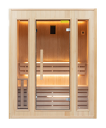 ZEN 3P är en klassisk traditionell bastu i massiv kanadensisk gran, designad för dig som vill uppleva äkta nordisk bastukultur hemma. Med sin naturliga träfinish och genomtänkta konstruktion skapar den en varm och rogivande atmosfär.