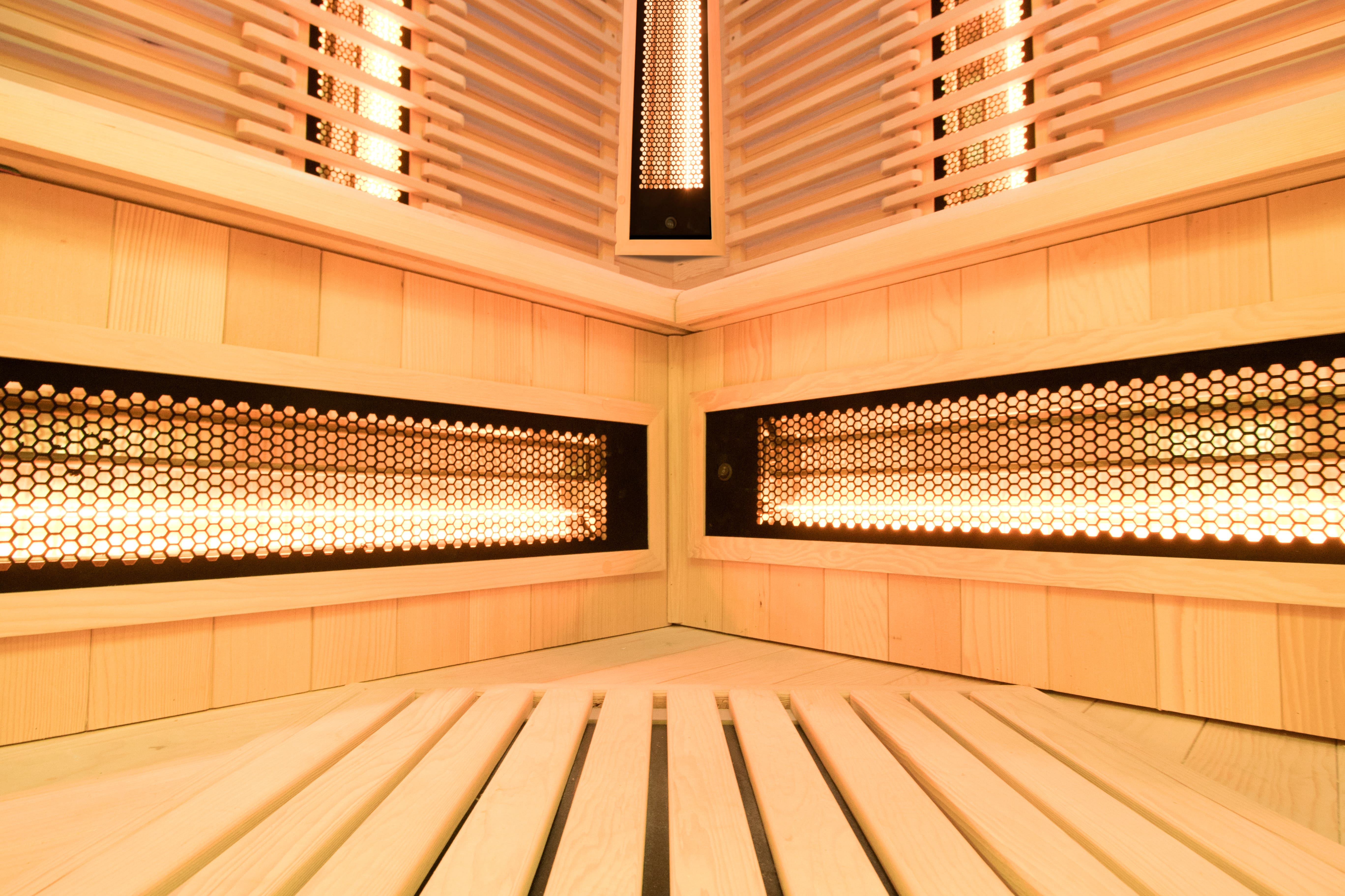 PureWave EVO 3C är en exklusiv infraröd bastu i hörnmodell för upp till 3 personer. Med Holl’s Dual Healthy Full Spectrum-teknologi (Quartz + Magnesium) täcks hela det infraröda spektrumet för både ytlig och djupgående effekt.