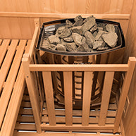 Bastun ger torr värme upp till cirka 80°C. När vatten hälls över de heta stenarna skapas den klassiska bastuångan som ger djup avslappning och lindrar spänningar i muskler och leder.