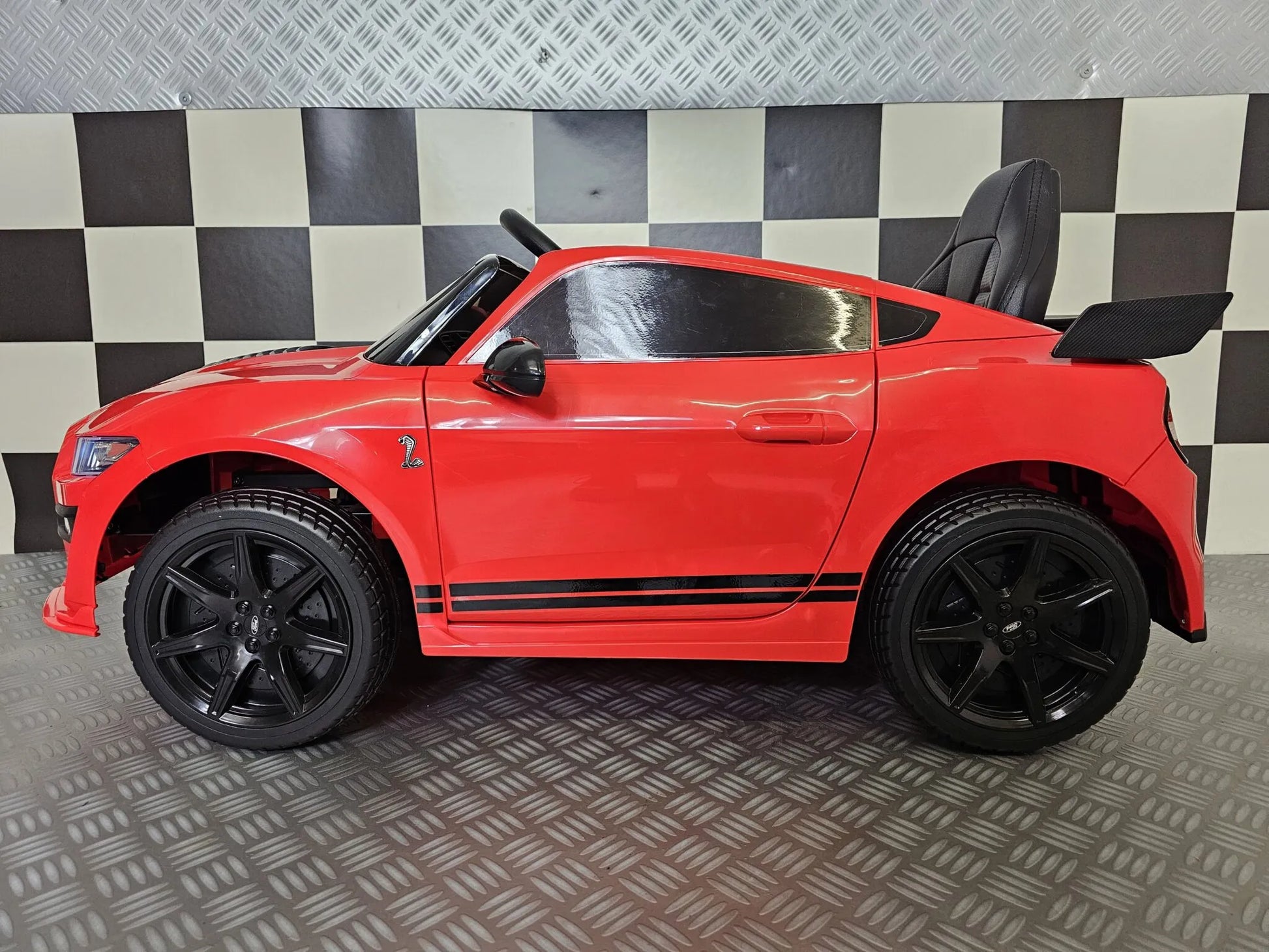 Denna barnbil Ford Mustang Shelby är lämplig för barn från cirka 3 år (på grund av användningen av små delar). Utrustad med fjärrkontroll så att du kan styra och köra ditt barn.