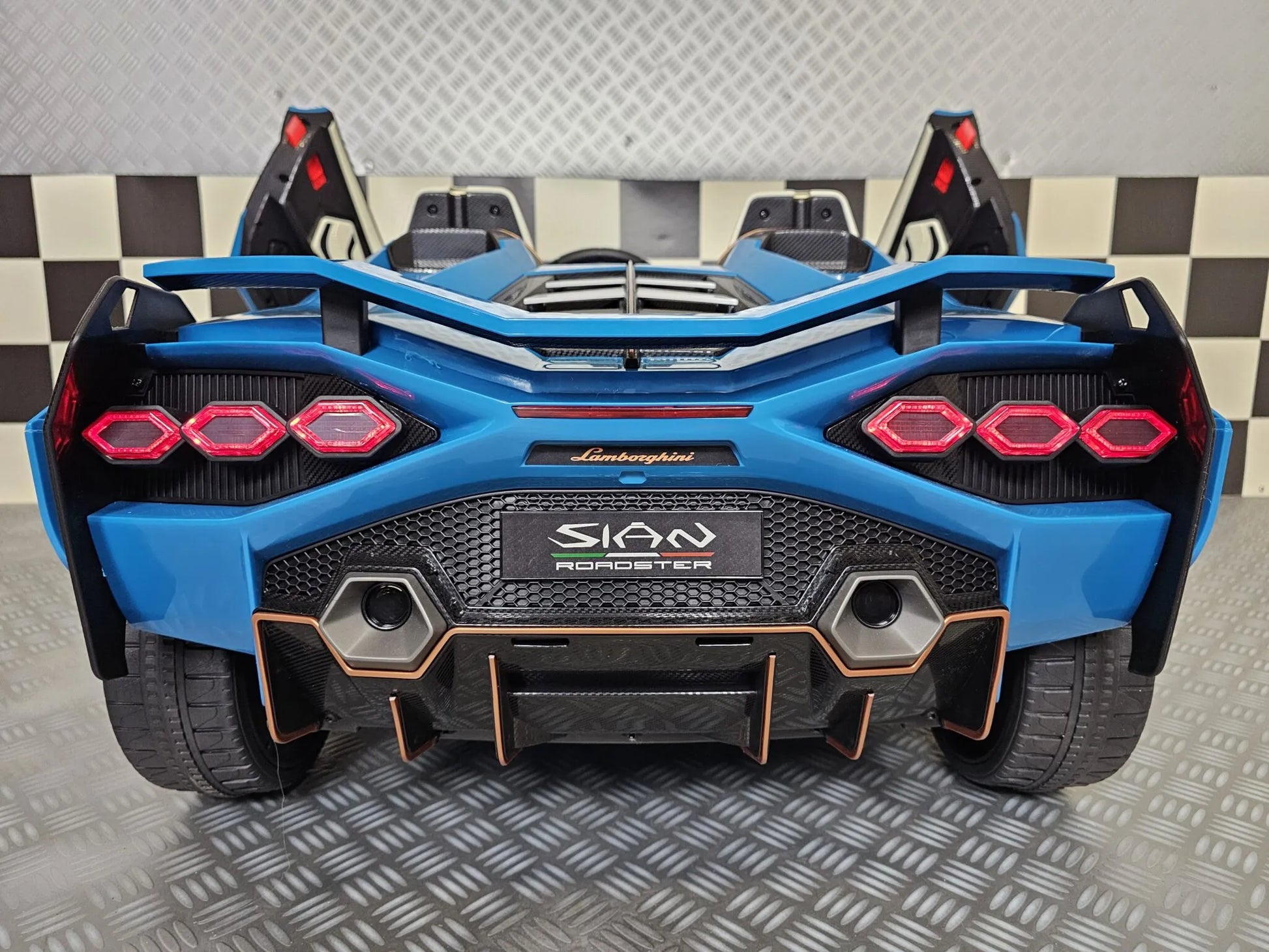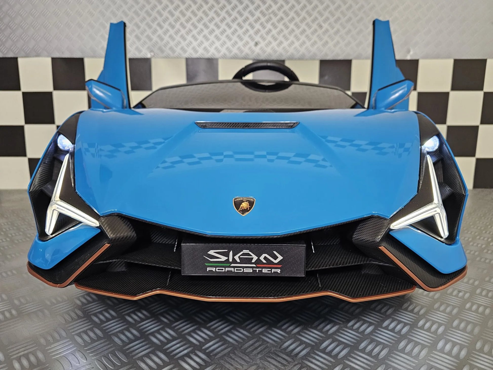 Denna Lamborghini Sian barnbil är bland annat försedd med fram- och bakljus, gummidäck och ett lädersäte. Lämplig för barn från 3 år (på grund av små delar).