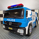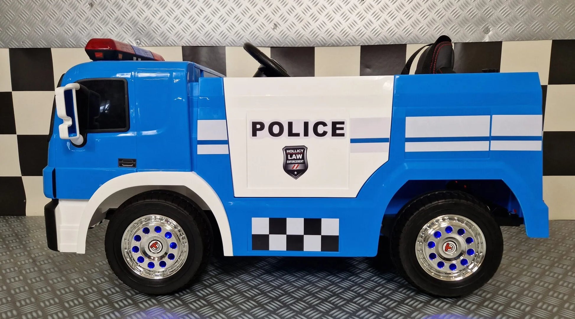 Denna robusta 12-volts Polisbarnbil kommer med lädersäte, blinkande ljus, Passar från ca 3 år.