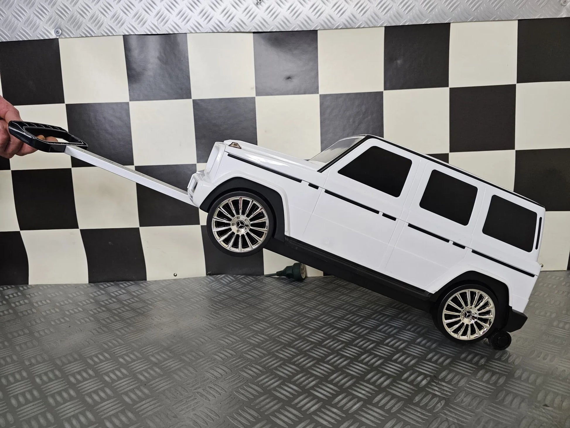 Hur trevligt är det att ditt barn kan ta med sin egen bil resväska på semestern! Man kan också fälla ut handtag på taket för att barnen ska kunna använda den som en gåbil.