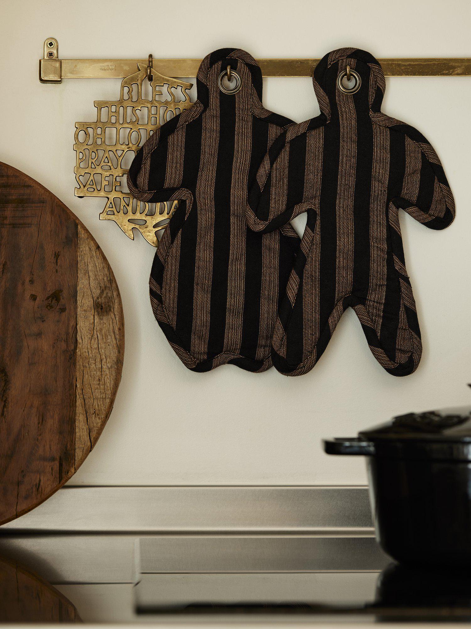 Ava grytlapp i form av en pepparkaksgumma och gubbe. Öljett upptill. Mått 22x32cm. Produkten är certifierad enligt STANDARD 100 by OEKO-TEX®. Certifieringen garanterar att produkten är testad och fri från ämnen som kan vara skadliga för hälsan och miljön.