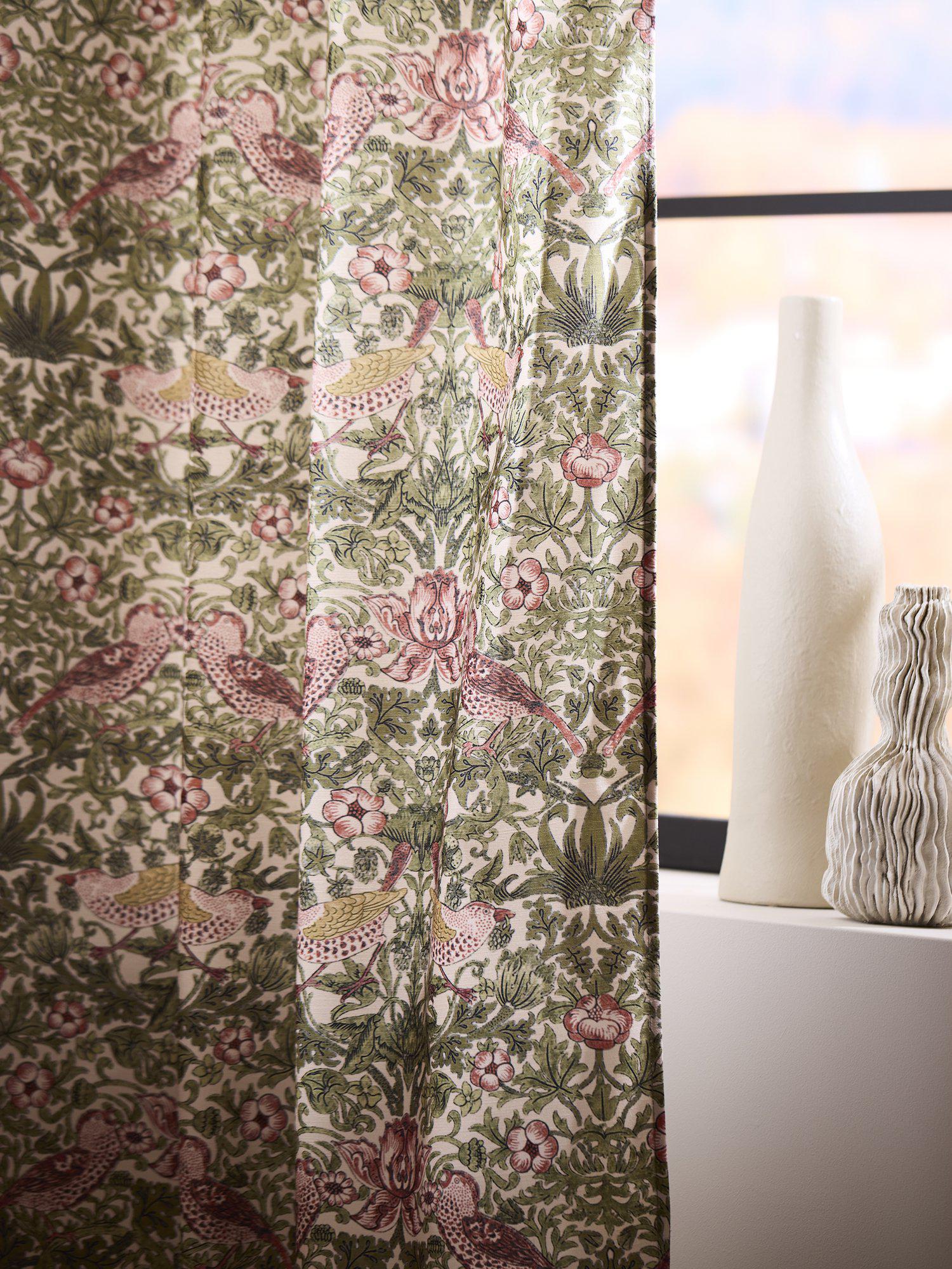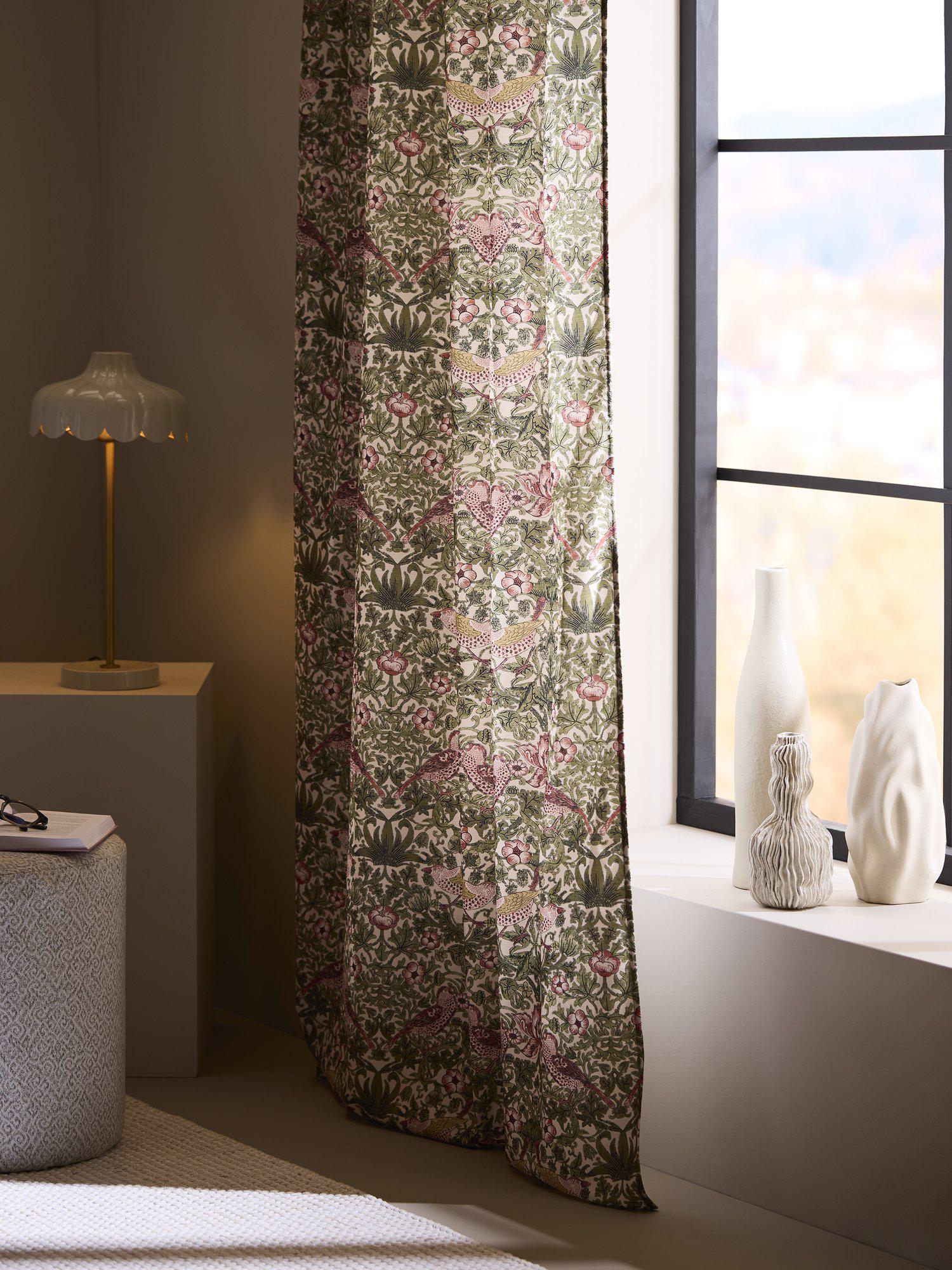 Klassisskt mönsterbild som för tankarna till den engelska traditionen. Tryckt på ett mjukt tyg med bomullskänsla med tungt fall. 2-pack multibandslängder med tryckt mönster. Multibandet är en flexibel lösning som gör att gardinen kan hängas upp antingen med fingerkrokar, räkor eller direkt på en stång beroende på vilken typ av veck och vilket fall du vill ha på gardinen. Använd snabbfållningsband för att få önskad längd på gardinen. Måttet på varje gardin är 130x250cm.