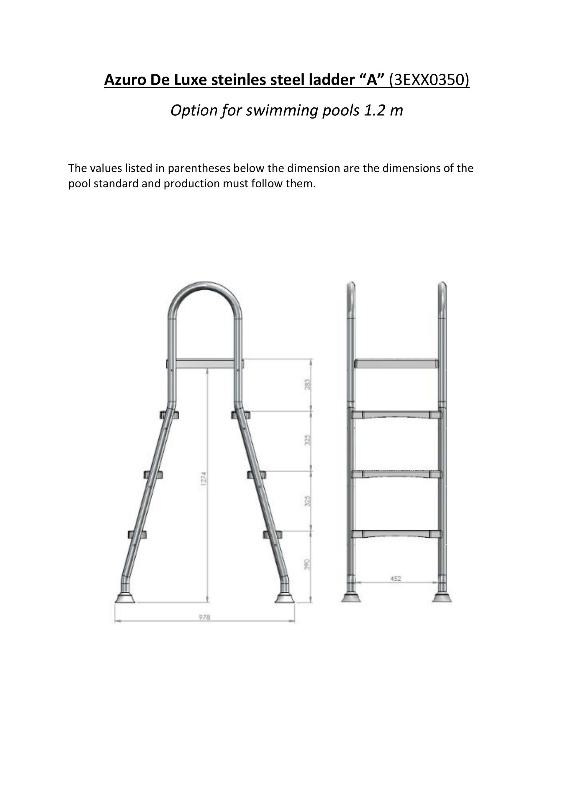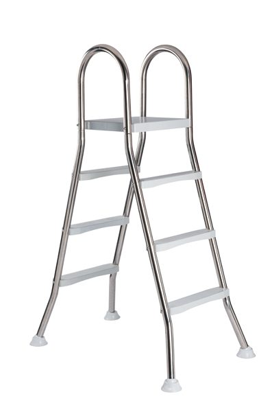 Azuros poolstegar är viktiga för att du ska kunna ta dig ner i poolen på ett bekvämt och säkert sätt. Vi erbjuder trappor till alla Azuros uppblåsbara pooler och rampooler med höjder från 0,9 m till 1,22 m. Trapporna är tillverkade av högkvalitativt galvaniserat stål, målade rör och härdade plastkomponenter.