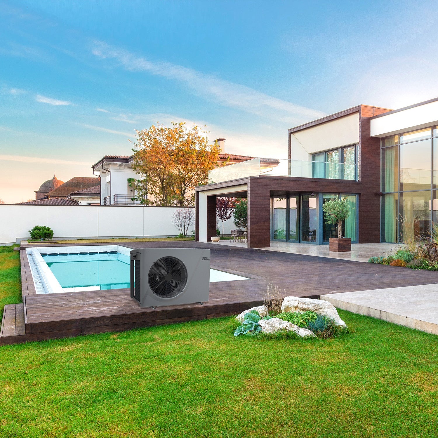 Silverline Fi gör det möjligt att förlänga poolsäsongen från vår till höst med stabil temperatur och lägre energiförbrukning jämfört med traditionella on/off-modeller.