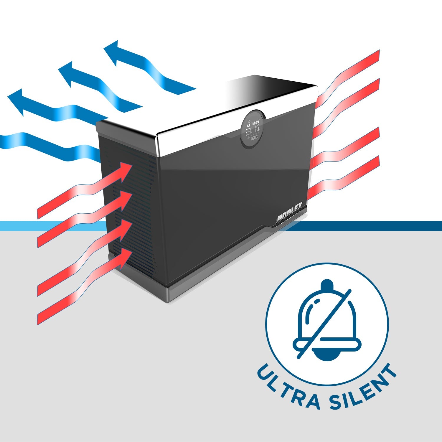 - Endast 19 dB(A) vid 10 meter – bakåtriktad luftutblåsning