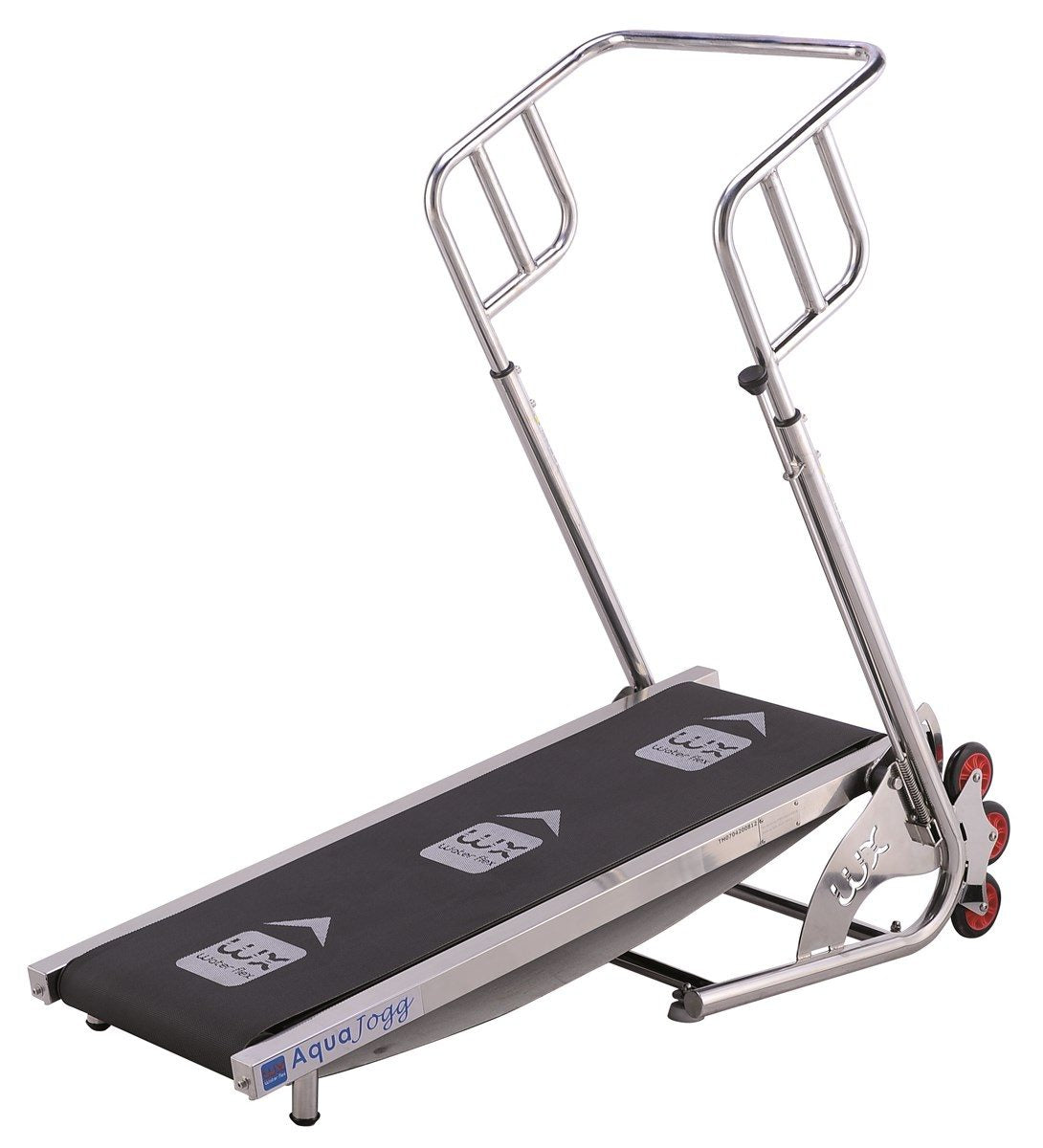 Med sitt vattenbaserade löpband gör Waterflex det möjligt för alla att njuta av hydroterapibaserad konditionsträning med dubbla fördelar. Att gå och springa i vatten minskar effekten av vikt, förbättrar balansen och främjar blodcirkulationen. Löpbandet i poolen använder en mekanisk mekanism i form av ett bälte som drivs av fötternas rörelser när du går eller springer. Dess lutning på 13° gör att du kan anpassa din aquafitness-session efter dina behov: rehabilitering, balans, konditionsträning. Waterflex unika AquaJogg är tillverkad av anodiserad aluminium, vilket gör den särskilt lätt. Den har också ett lättanvänt öppningssystem och kan vikas undan för diskret förvaring.