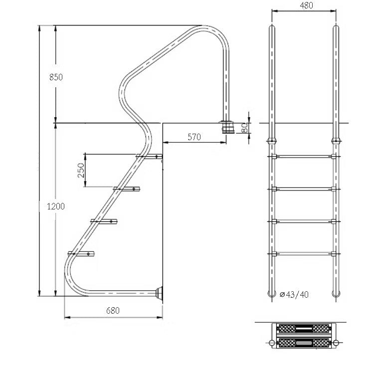 Dessa trappsteg är tillverkade av högkvalitativt AISI 304 rostfritt stål och kännetecknas av hög stabilitet.