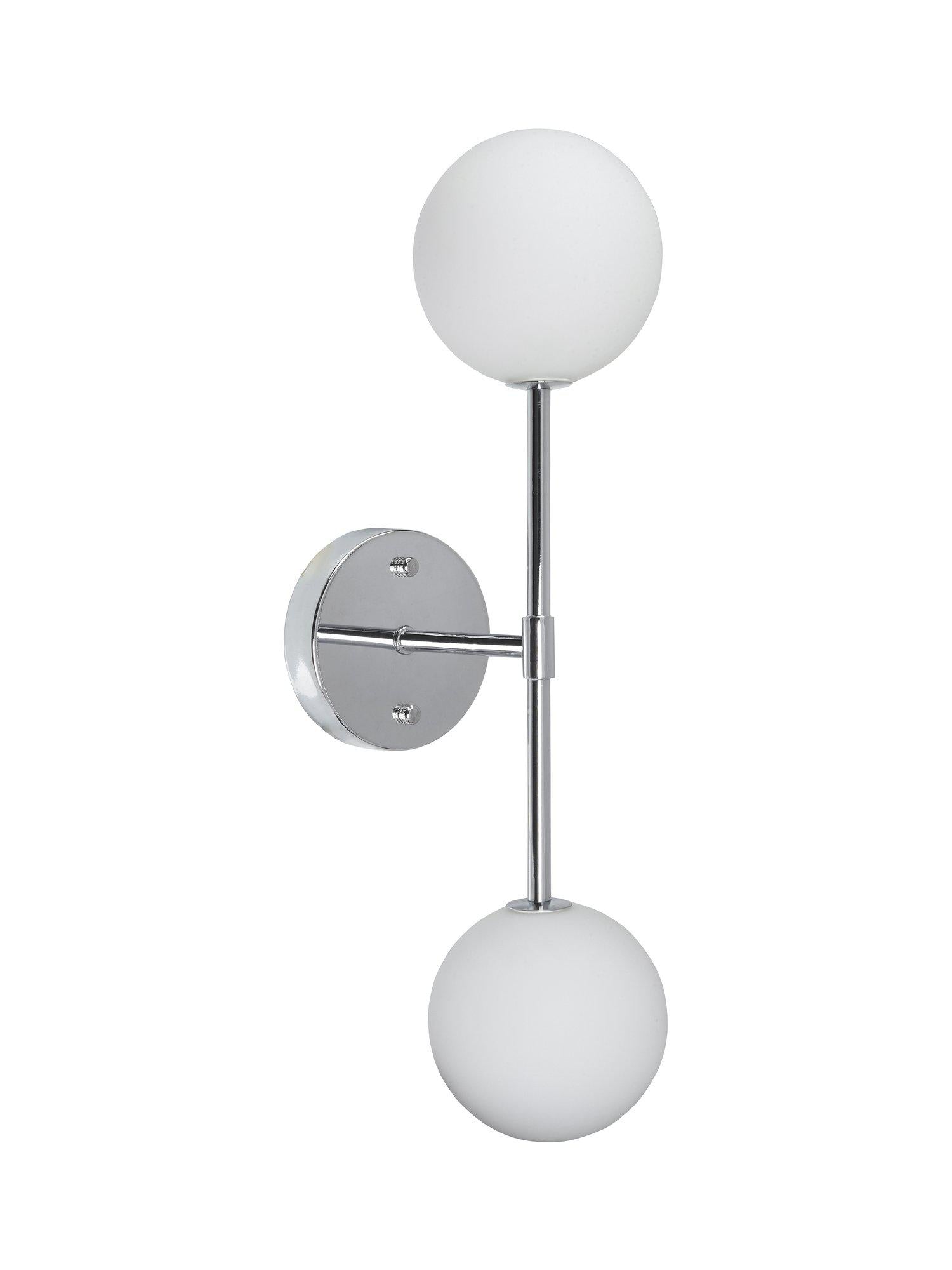 Vägglampa i minimalisk design med opalglas och metallstomme. Den är fuktskyddad i IP23 klassning och passar bra i badrumsmiljöer. Eftersom glasskärmen är handgjord kan det förekomma enstaka luftbubblor i glaset samt en viss ojämnhet i glastjocklek över glasytan. Observera att denna armatur är för fast installation och att det inte medföljer någon separata kontaktdon och anslutningskabel. Storlek 49x12x19cm. Ljuskälla av typ dimbar LED G9, 230V, 3000K, 2st ingår.