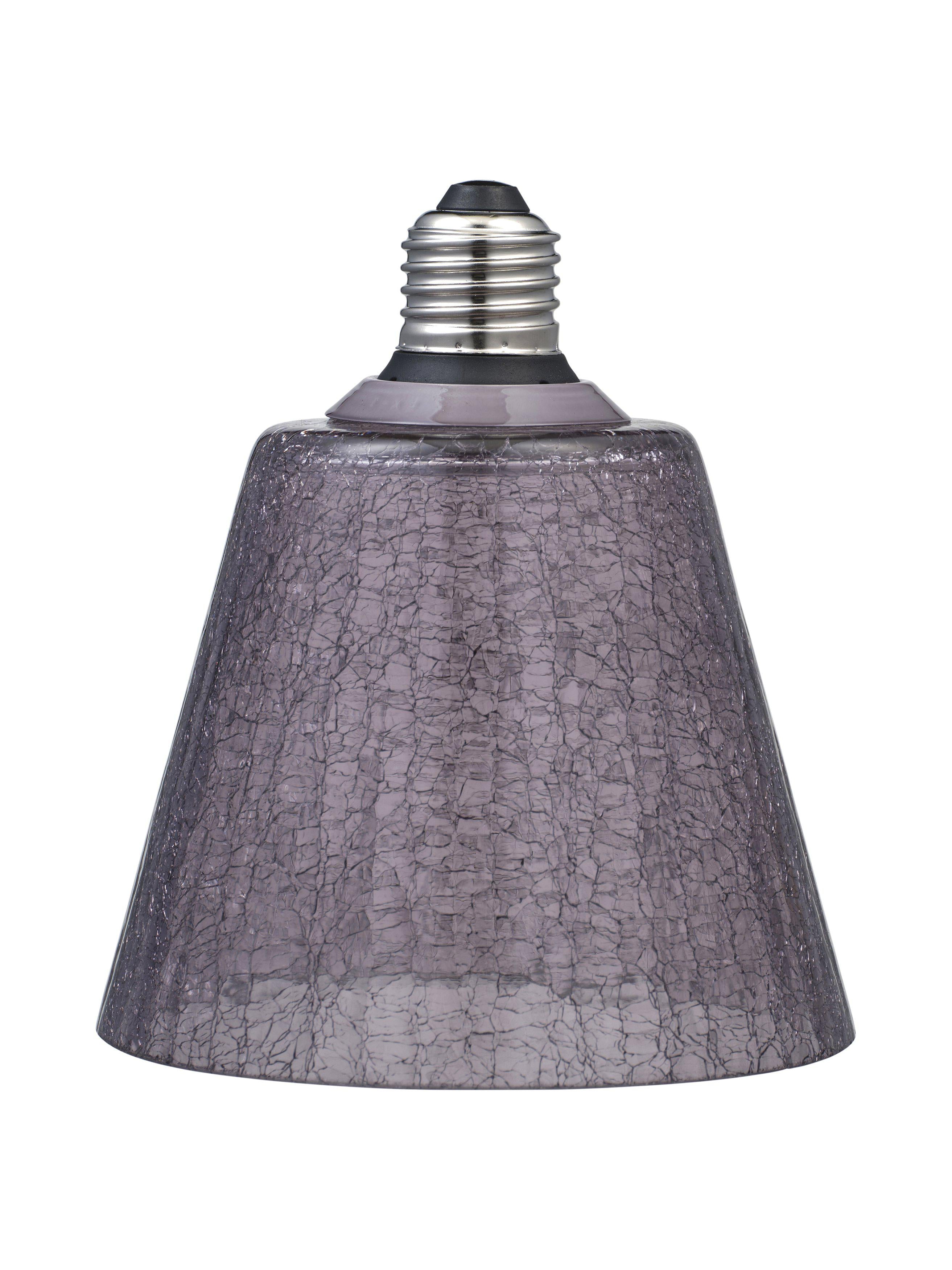 Fönsterlampa med rökfärgat glas skärm som ockå är en inbyggd LED ljuskälla och E27 sockel, 4m svart textil kabel och stickkontakt. Diameter 12,5cm. Höjd 18,5cm.