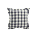 Kuddfodral i bomull med garnfärgade rutor och overlockade kanter, dragkedja i nederkant.