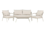 Sicily är en elegant möbelgrupp som ger din uteplats en sofistikerad och inbjudande känsla. Gruppen består av ett bord med en stilren glasskiva, två bekväma fåtöljer och en soffa – allt tillverkat av lätt och hållbart aluminium som står emot väder och vind. De mjuka dynorna i beige polyester erbjuder både komfort och tålighet, vilket gör Sicily idealisk för långa stunder av avkoppling och umgänge. Bordets glasskiva ger en praktisk och elegant yta som passar lika bra för servering som för dekorativa inslag. Med sin moderna design och slitstarka material är Sicily det perfekta valet för att skapa en harmonisk och stilren utomhusmiljö.